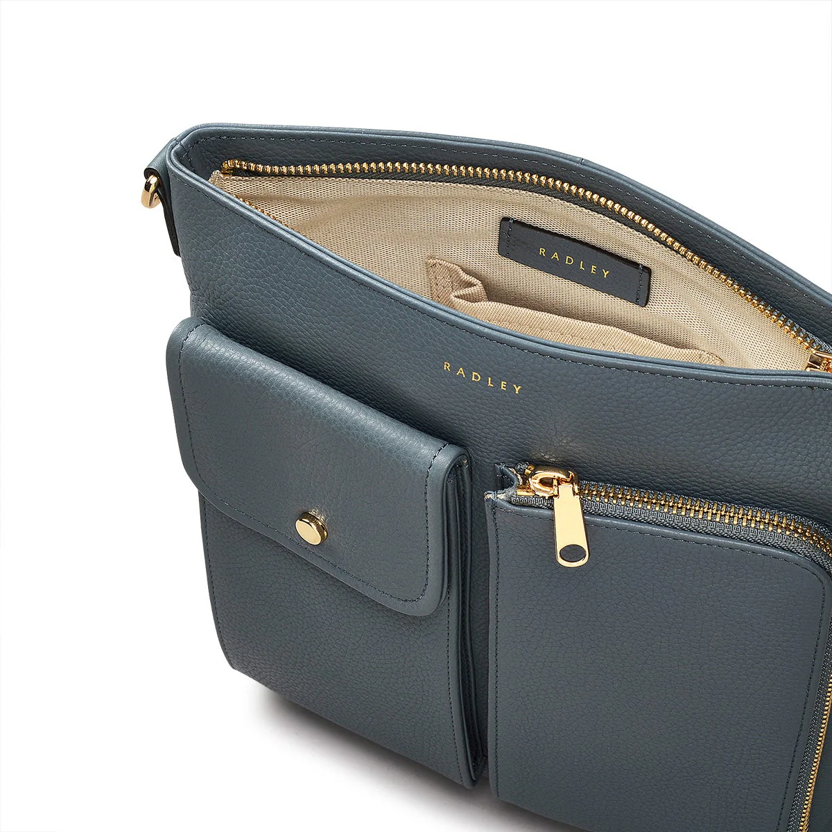 - Interior zip and slip pockets